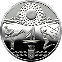 На реверсі монети угорі зображено стилізований сонячний диск на тлі гори Фудзіяма; унизу – логотип Національного олімпійського комітету України; у центрі на дзеркальному тлі стилізовані під мистецтво оригамі зображення, що символізують деякі олімпійські види спорту. |