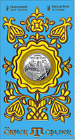 На реверсі монети на дзеркальному тлі рельєфно відтворено орнамент, який уособлює сімейні цінності. У центрі орнаменту розташовані взаємопов’язані елементи, які відображають глибокий символізм родинних зв’язків. Ця сім’я складається зі знаків чоловіка, жінки та їхнього спільного дому. По обидва боки центральної вертикалі розташовані символи дітей. Усі разом вони створюють повноцінний орнамент, що відображає сімейну єдність та гармонію. |
