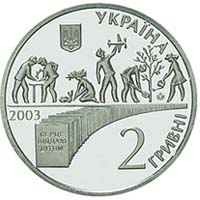 | На аверсі монети зображено горизонтальну композицію, основою якої є книги - праці Сухомлинського та діти, які відпочивають та займаються суспільно-корисною працею, угорі - малий Державний Герб України (ліворуч), напис УКРАЇНА та логотип Монетного двору Національного банку України, у нижній частині монетного поля - рік карбування монети 2003 та позначення номіналу 2 ГРИВНІ. |