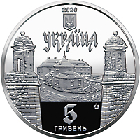| На аверсі монети розміщено: угорі – малий Державний Герб України, під яким напис УКРАЇНА; над гербом зазначено рік карбування монет 2020; праворуч і ліворуч на монеті зображено вежі, крізь які видно стилізовану панораму замку; унизу зазначено номінал – 5/ГРИВЕНЬ; унизу праворуч ? логотип Банкнотно-монетного двору Національного банку України. |