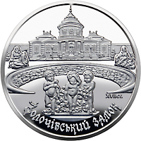 На реверсі монет зображено внутрішнє подвір’я замку – на передньому плані фонтан та скульптурна композиція трьох купідонів, на другому плані – Китайський палац, ліворуч від якого – статуя Нептуна, праворуч – статуя Афродіти; розміщено написи: ЗОЛОЧІВСЬКИЙ ЗАМОК (унизу півколом), XVIІ ст. (праворуч). |