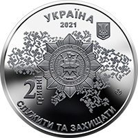 На аверсі монети розміщено: малий Державний Герб України (угорі праворуч); у центрі на тлі стилізованої карти України – логотип Національної академії внутрішніх справ; написи: УКРАЇНА/2021 (угорі), 2/ГРИВНІ (ліворуч від логотипу академії, напис ГРИВНІ – вертикальний), СЛУЖИТИ ТА ЗАХИЩАТИ (унизу півколом); логотип Банкнотно-монетного двору Національного банку України (праворуч).