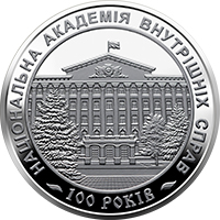 На реверсі монети зображено будівлю Національної академії внутрішніх справ та написи: НАЦІОНАЛЬНА АКАДЕМІЯ ВНУТРІШНІХ СПРАВ (по колу), 100 РОКІВ (унизу).