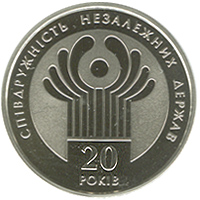 На реверсі монети на матовому тлі зображено емблему Співдружності Незалежних Держав, під якою розміщено напис 20/РОКІВ, та угорі півколом - СПІВДРУЖНІСТЬ НЕЗАЛЕЖНИХ ДЕРЖАВ.