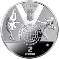 На аверсі монети розміщено: угорі – написи УКРАЇНА/ 2021, під якими – малий Державний Герб України; у центрі – стилізовану композицію у вигляді медалі на стрічці: зображено Земну кулю, навколо якої написи: УКРАЇНСЬКИЙ БОГАТИР (півколом над кулею), ЧЕМПІОН ЧЕМПІОНІВ (півколом під кулею); номінал монети – 2/ГРИВНІ (унизу на дзеркальному тлі); по обидва боки від центральної композиції – стилізовані сцени боротьби; логотип Банкнотно-монетного двору Національного банку України (унизу праворуч).