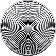 На реверсі монети на дзеркальному тлі рельєфно зображено серце, від якого рівномірно розходяться хвилі. Стилізована композиція є символом щирого та всеосяжного кохання, вібрації якого сягають найпотаємніших глибин душі.