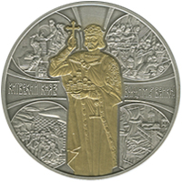 Присвячена видатному державному та політичному діячеві, творцю середньовічної європейської держави Руси-України - князю Київському Володимиру Великому та вшановує його пам`ять у зв`язку з 1000-літтям упокоєння. Монету виготовлено з використанням технології патинування, елемент оздоблення - локальна позолота (вміст золота в чистоті не менше ніж 0,002 г).