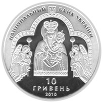 | На аверсі монети розміщено малий Державний Герб України, напис півколом НАЦІОНАЛЬНИЙ БАНК УКРАЇНИ (угорі), номінал, рік карбування монети - 10/ГРИВЕНЬ/2010 (унизу) та зображено чудотворну ікону Зарваницької Матері Божої, з лівого і правого боків - ангели з іконостаса. |