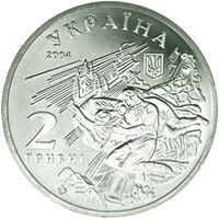 | На аверсі монети зображено стилізовану композицію з гравюри Георгія Якутовича до `Тіней забутих предків`. Угорі півколом розміщено напис УКРАЇНА, рік карбування монети – 2004 (ліворуч), малий Державний Герб України (праворуч) та ліворуч від композиції – номінал – 2/ ГРИВНІ, а також логотип Монетного двору Національного банку України. |