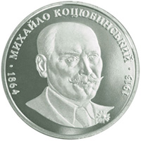 На реверсі монети зображено портрет Михайла Коцюбинського та кругові написи: 1864 • МИХАЙЛО КОЦЮБИНСЬКИЙ • 1913. |