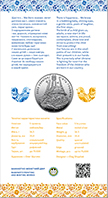 | На аверсі монети розміщено: угорі малий Державний Герб України, ліворуч і праворуч від якого написи півколом – УКРАЇНА, рік карбування монети 2023; номінал П’ЯТЬ ГРИВЕНЬ, у центрі зображено наповнену народним колоритом картину Олега Шупляка “Колиска”, на якій втілено один з найдорожчих архетипів українців – батьківська хата в оточенні мальв та рушника, яка є водночас колискою та гніздечком, що символізує продовження роду; унизу на дзеркальному тлі – логотип Банкнотно-монетного двору Національного банку України. |