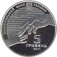 | На аверсі монети розміщено: угорі малий Державний Герб України та напис півколом НАЦІОНАЛЬНИЙ БАНК УКРАЇНИ, на тлі фрагмента електрокардіограми зображено руки дитини і дорослої людини, що тягнуться одна до одної, - композицію, яка символізує один із напрямів діяльності вченого, за ініціативи якого було відкрито (1941) перший у світі диспансер по боротьбі з передчасним старінням на базі якого згодом було створено інститут геронтології; праворуч на дзеркальному тлі розміщено номінал монети - 5/ ГРИВЕНЬ та рік карбування - 2011. |