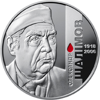 На реверсі монети зображено портрет Олександра Шалімова, праворуч від якого вертикальний напис ОЛЕКСАНДР ШАЛІМОВ, червона крапля (використано тамподрук) та його роки життя 1918/2006.