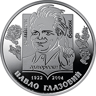 Пам’ятна монета присвячену одному з найпопулярніших українських поетів-гумористів, заслуженому діячеві мистецтв України, лауреату премії імені Остапа Вишні (1988 рік), першому лауреату премії імені Петра Сагайдачного (1996 рік) – Павлу Прокоповичу Глазовому. Невичерпними джерелами творчості гумориста є скарби живої мови, іскристі перлини народної мудрості. Гумор поета-сатирика – доброзичливий, веселодайний; байкам притаманні дотепність і влучність; багато творів мають риси народного анекдоту та додають доброго настрою. Притаманні письменнику любов до рідної землі, свого народу, вболівання за українську мову, українське мистецтво, донесені до людей в гумористичній формі, підбадьорюють у найскладніші хвилини життя, а творчість – відкрита сторінка веселої вдачі українського народу.