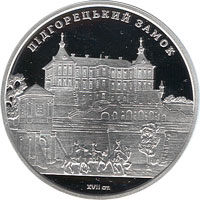 На аверсі монети розміщено: угорі напис УКРАЇНА, під яким - малий Державний Герб України; унизу номінал -10/ГРИВЕНЬ, у центрі - стилізований бароковий картуш із зображенням плану замку. На монеті з нейзильберу унизу ліворуч розміщено логотип Монетного двору Національного банку України. На реверсі монети зображено Підгорецький замок, на передньому плані вершників, на дзеркальному тлі розміщено написи - ПІДГОРЕЦЬКИЙ ЗАМОК (угорі півколом), XVII cт. (унизу).