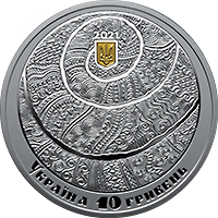 На аверсі монети розміщено: угорі малий Державний Герб України (позолочений), над яким – рік карбування монети – 2021; унизу півколом написи: УКРАЇНА і 10 ГРИВЕНЬ; у центрі зображено прикрашену знаками-символами, оберегами, візерунками спіраль – багатозначний символ еволюції Всесвіту, розвитку, безперервності, ритму дихання і самого життя.