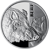 На реверсі монети ліворуч на дзеркальному тлі зображено вепра, праворуч від якого на матовому тлі - вертикальний напис ВЕПР (угорі) та стилізований фрагмент скіфської пластини із зображенням вепра (праворуч).